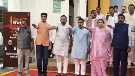 મુખ્યમંત્રી ભૂપેન્દ્ર પટેલ તથા રાજ્ય મંત્રીમંડળના મંત્રીઓ - મુખ્ય સચિવ તથા વરિષ્ઠ સચિવઓ અને અધિકારીઓએ વિધાનસભા પોડિયમમાં યોજાયેલા સામુહિક પ્રતિજ્ઞા પઠનમાં જોડાઈને "ભારત વિકાસ પ્રતિજ્ઞા" લીધી હતી.દેશના વડાપ્રધાન તરીકે નરેન્દ્રભાઈ મોદીએ વિકસિત ભારતના નિર્માણનો સંકલ્પ કર્યો છે તેને સાકાર કરવામાં પોતાનું સંપૂર્ણ યોગદાન માટે મન-કર્મ-વચનથી તત્પર રહેવા સાથે દેશ માટે સમર્પિત ભાવની સામુહિક ભારત વિકાસ પ્રતિજ્ઞા સૌએ કરી હતી.