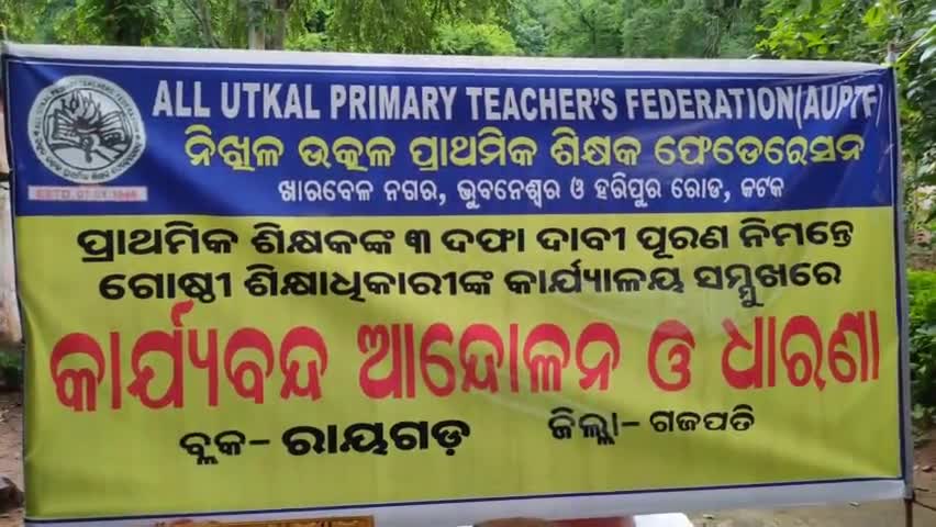 ରାୟଗଡା: ବିଇଓଙ୍କ କାର୍ଯ୍ୟାଳୟ ସମ୍ମୁଖରେ ଶିକ୍ଷକଙ୍କ ଗଣଧାରଣା; ବିଦ୍ୟାଳୟରେ ପଡ଼ିଲା ତାଲା