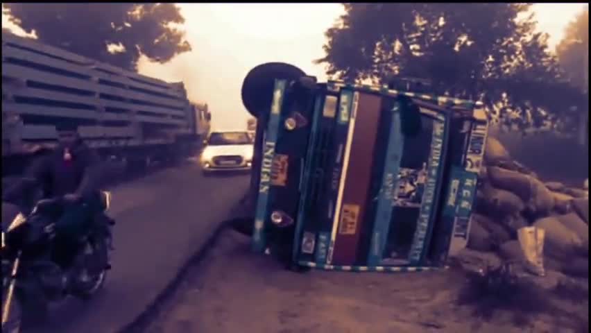 रानीगंज: देल्हूपुर प्रयागराज संपर्क मार्ग पर धान से लदा ट्रक अनियंत्रित होकर सड़क किनारे पलटा, चालक घायल