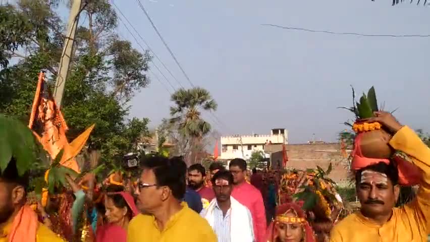 कल महुआ के गद्दोपुर में अष्टयाम यज्ञ को लेकर निकाली गई भव्य कलश यात्रा ।