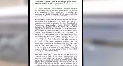 न्यूज़क्लिक से जुड़े पत्रकारों के घरों पर छापेमारी की ‘INDIA’ व एडिटर्स गिल्ड ने की निंदा #न्यूज़क्लिक