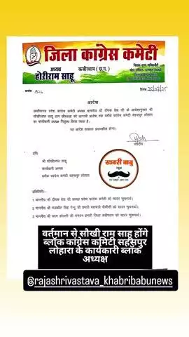 सहसपुर लोहारा ब्लॉक ब्रेकिंग- वर्तमान से सौखीलाल साहू होंगे ब्लॉक कोंग्रेस कमिटी सहसपुर लोहारा के कार्यकारी अध्यक्ष