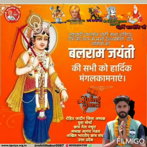 भाद्रपद कृष्ण पक्ष की छठी तिथि में मनाई जाने वाली भगवान श्री "बलराम जयंती की हार्दिक बधाई : जिला अध्यक्ष युवा हरिगढ़