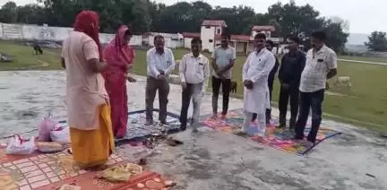 नगर परिषद चौराहा के अंतर्गत मोहिनी देवी स्टेडियम में किया गया विभिन्न योजनाओं का शिलान्यासिस इस दौरान नगर परिषद के अधिकारी कर्मचारी संविदाका, ठेकेदार रहे मौजूद