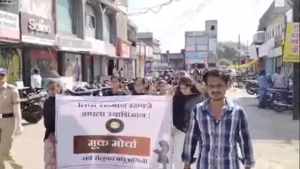 तीन दिवसांपूर्वी अल्पवयीन मुलीवर घडलेल्या अमानुष अत्याचाराच्या घटनेचा तीव्र निषेध करण्यासाठी तसेच आरोपींना कठोर शिक्षा मिळावी आणि अशा नीच प्रवृत्तीच्या व्यक्तींना धडा मिळावा या मागण्यांसाठी सेलू शहरातील विविध क्षेत्रातील हजारो नागरिकांनी आज मंगळवार 7 ऑक्टोबर रोजी सकाळी सेलू शहरातील श्री लोकमान्य टिळक पुतळ्यापासून उपविभागीय अधिकारी कार्यालयापर्यंत प्रचंड असा मूक मोर्चा काढला या मोर्चा हजारो महिला व नागरिक मोठ्या संख्येने सहभागी होते.