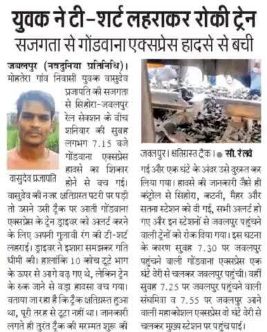 #युवक ने टी शर्ट लहराकर रोकी @ट्रेन ! बहुत बड़ा हादसा होने से टला।