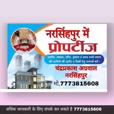 नरसिंहपुर में प्लाट मकान जमीन वेचने एवं लेने के लिए संपर्क कर सकते हैं।7773815608