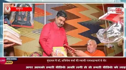 #वृंदावन में डॉ. अभिषेक वर्मा ने की स्वामी #रामभद्राचार्य से भेंट, ‘मगध’ उपन्यास और गणेश प्रतिमा की भेंट #JagadguruRamBhadracharya #मथुरा