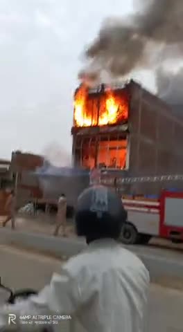 छिबराऊ में सौरिख तिराहे पर बेड वा सोफ़ा की दुकान में लगी आग।