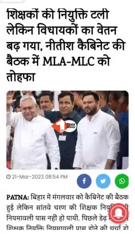 बिहार में शिक्षकों की कोई जरूरत नहीं लेकिन घोटालेबाज दागी नेताओं की बिहार को जरूरत है तभी तो विधायक का पेमेंट बढाया गया।