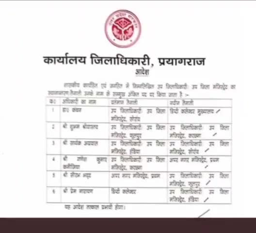 #प्रयागराज- डीएम संजय कुमार खत्री ने जारी किया आदेश कई एसडीएम के कार्य क्षेत्र में हुआ बदलाव। करछना में शुभम श्रीवास्तव,