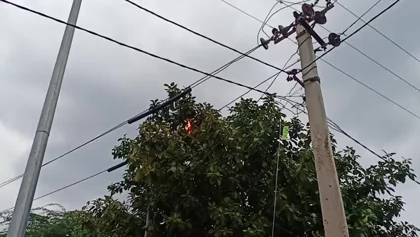 बिजली के तार के संपर्क में आई टहनी तो पेड़ में लग गई आग