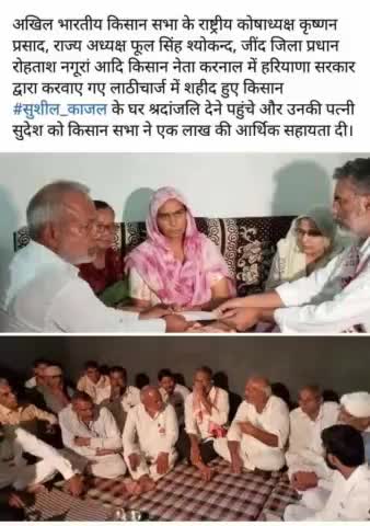 किसान सभा हरियाणा ने शहीद किसान के परिवार को सहायता के रूप में एक लाख रुपए का सहयोग किया व घर जाकर शोक प्रकट किया।