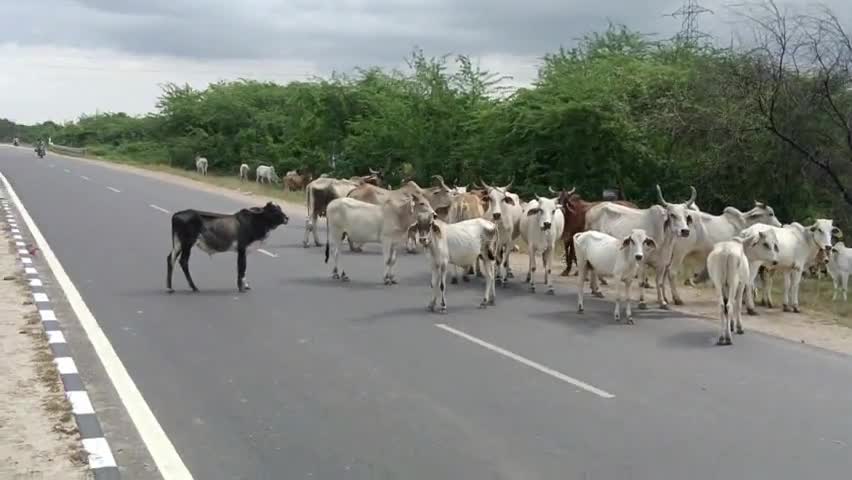 रोहट : पाली जोधपुर नेशनल हाईवे दे रहा हादसों को न्योता, हाईवे पर भारी संख्या में रहता है मवेशियों का जमावड़ा।