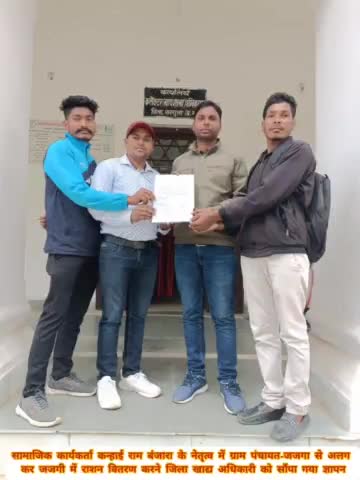 सामाजिक कार्यकर्ता कन्हाई राम बंजारा के नेतृत्व में ग्राम जजगी में राशन वितरण करने जिला खाद्य अधिकारी को सौंपा गयाज्ञापन