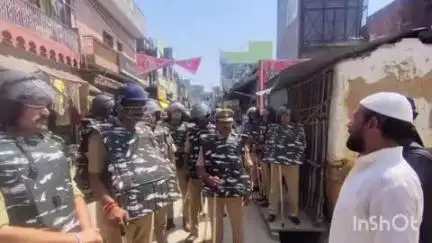 अनूपशहर में नवरात्रि और जुम्मा की नमाज को लेकर पुलिस ने फ्लैग मार्च निकाला।भारी पुलिस बल ने कस्बे के मुख्य बाजार में मार्च किया इस दौरान स्थानीय निवासियों ने शांति बनाए रखने और अफवाहों से दूर रहने की अपील की। वहीं थाना प्रभारी धर्मेंद्र कुमार शर्मा ने बताया कि यह फ्लैग मार्च शासन द्वारा जारी दिशा निर्देशों के अनुसार आयोजित किया गया है।