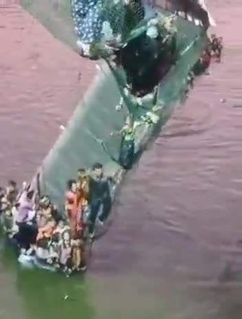 गुजरात के मोरबी में केबल पुल टूटा करीब 400 लोग नदी में गिरे..