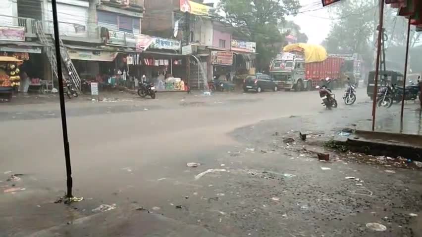 गाड़ासरई में झमाझम बारिश, नाली न होने से रोड में पानी, पैदल चलना मुश्किल।।