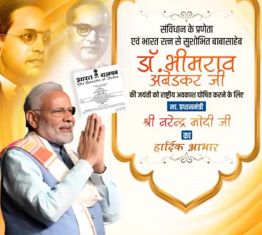सामाजिक समरसता एवं समानता के संवाहक, भारत रत्न पूज्य बाबासाहेब डॉ. भीमराव अंबेडकर जी की जयंती को राष्ट्रीय अवकाश घोषित किये जाने पर देश के यशस्वी प्रधानमंत्री श्री नरेंद्र मोदी जी का कोटिशः आभार एवं धन्यवाद! #AmbedkarJayanti