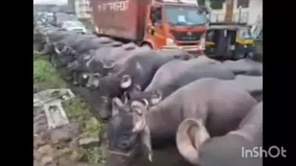 काल दिवसभर मुसळधार पाऊस सुरू होता त्यामुळे कल्याणच्या गोविंदवाडी परिसरामध्ये खाडीचे पाणी सुटले होते आणि परिसर पूर्ण पाण्याखाली गेला होता. नागरिकांची घरे आणि तबेल्यात मोठ्या प्रमाणात पाणी गेले होते त्यामुळे नागरिकांचे स्थलांतर करण्यात आले तसेच तबेल्यातील म्हशी देखील बाहेर काढण्यात आल्या. मात्र बांधायचे कुठे हा प्रश्न निर्माण झाल्यानंतर चक्क मस्त बेला चालकाने म्हशी गोविंदवाडी बायपास रोड वरील दुभाजकालगत बांधल्या. मात्र म्हशी रस्त्यावर बांधल्यामुळे बायपास रोडवर प्रचंड वाहतूक कोंडी झाली आह.