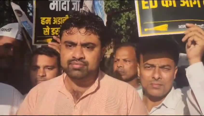 AAP सांसद @SanjayAzadSln जी के घर ED के फर्जी छापे के खिलाफ Amroha में प्रांतीय अध्यक्ष इंजीनियर मोहम्मद हैदर के नेतृत्व में आम आदमी पार्टी के कार्यकर्ता का जोरदार विरोध प्रदर्शन किया हर जोर जुल्म के टक्कर में संघर्ष हमारा नारा है