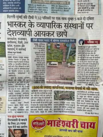 दैनिक भास्कर के 35 ठिकानों पर आएकर विभाग के छापे, भारत समाचार के 12 ठिकानों पर छापे,