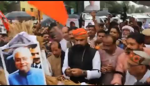 लाठीचार्ज और BJP नेता की मौत के विरोध में BJP अध्यक्ष सम्राट चौधरी के नेतृत्व में BJP नेताओं ने मुख्यमंत्री नीतीश कुमार का पुतला फुंका