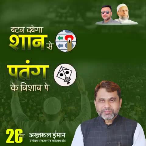 *3बटन दबेगा शान से* *पतंग के निशान पे* *किशनगंज वासियों से अपील है कि 26 अप्रैल को अपना बहुमूल्य वोट AIMIM के प्रत्याशी