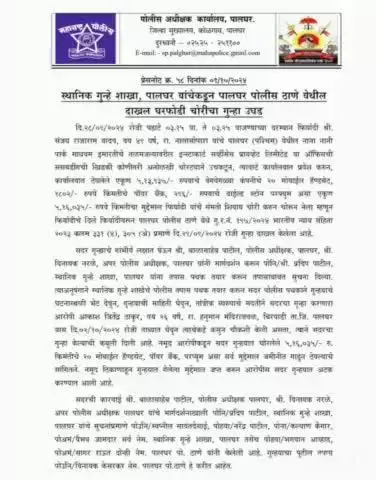 पालघर पोलीस ठाणे येथील दाखल चोरीच्या गुन्ह्याची उकल करण्यात स्थानिक गुन्हे शाखेस यश.