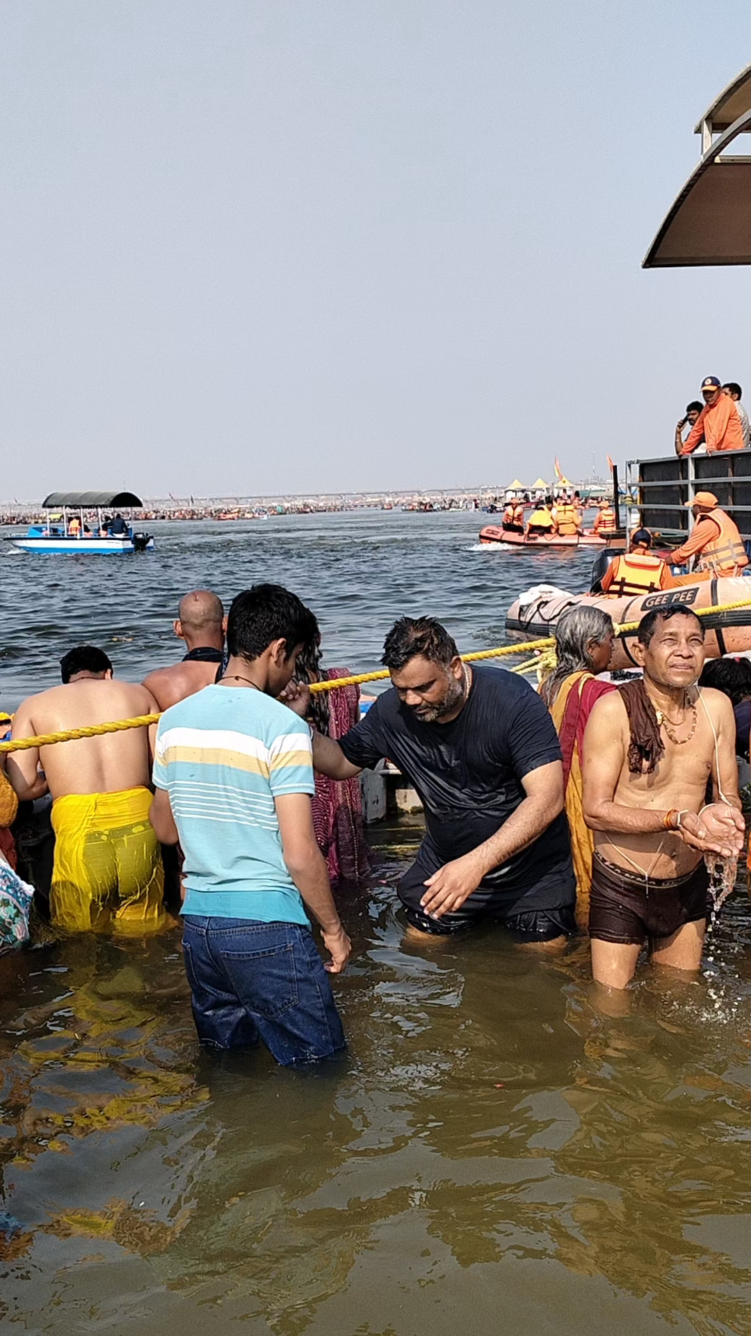 आज बेटू के साथ संगम मे डुबकी लगाई जय गंगा, यमुना, सरस्वती माई