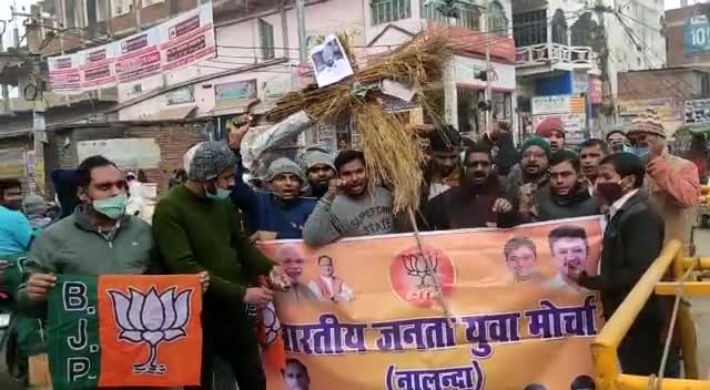 प्रधानमंत्री जी के जान खतरे में डालने वाले कांग्रेस अध्यक्ष सोनिया गांधी एवं पंजाब मुख्यमंत्री चन्नी की पुतला फुंका गया
