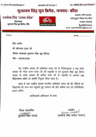एक और बड़ी जिम्मेदारी सौंपी मुझे शीर्ष नेतृत्व ने #बबेरू_विधानसभा_का_प्रभारी बनाया शीर्ष नेतृत्व का बहुत बहुत आभार ।।