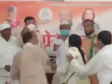 लड़की हूं, कांग्रेसियों से लड़ सकती हूं। देवरिया के जिला बैठक में महिला नेत्री तारा देवी का सम्मान करते कांग्रेसी।