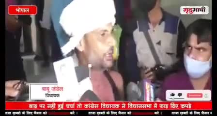 #कांग्रेस सोपुर विधायक बाबू जंडेल ने विधानसभ में फाड़े कपड़े और #सीएम पर लगाया आरोप की जनता की #बाढ़ पर कोई सुनवाई नहीं