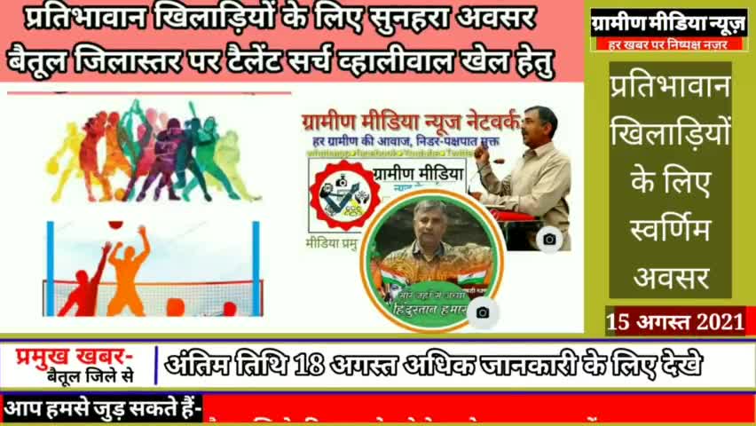 मुलताई प्रतिभावान खिलाड़ियों के लिए स्वर्णीम अवसर । पंजीकरण की अंतिम तिथि 18 अगस्त 2021