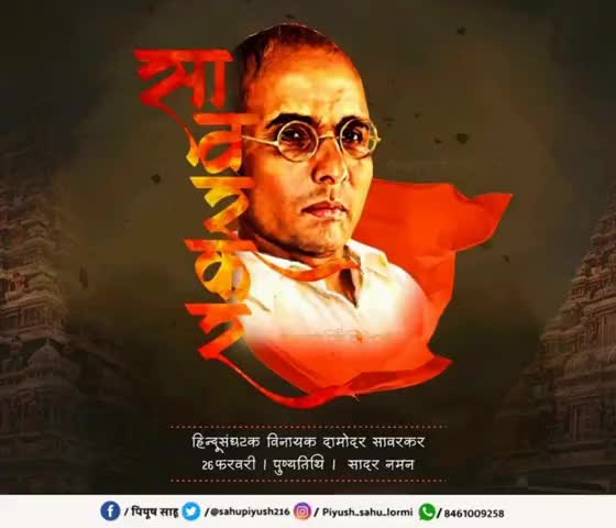 प्रखर राष्ट्रवादी नेता,स्वतंत्रता संग्राम सेनानी वीर विनायक दामोदर सावरकर जी को उनकी पुण्यतिथि पर शत शत नमन..