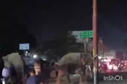 लक्सर राजमार्ग स्थित जगजीतपुर में जंगली हाथियों का झुंड सड़क पर पहुंच गया। अचानक सड़क पर आए हाथियों के झुंड के चलते अफरातफरी मच गई। घटना शराब के ठेके के पास की है। मंगलवार रात 9 बजे करीब मौके पर पहुंचे रेंजर शैलेंद्र सिंह नेगी की टीम में ट्रैफिक रोककर हाथियों को रास्ता पार कराया और हाथियों को खेलने वाले लोगों को कानूनी कार्रवाई की चेतावनी दी।
