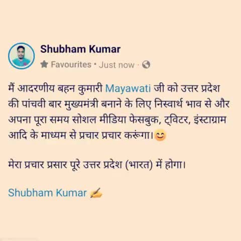 मैं आदरणीय बहन कुमारी @mayawati जी को उत्तर प्रदेश की पांचवी बार मुख्यमंत्री बनाने के लिए निस्वार्थ भाव से और अपना पूरा