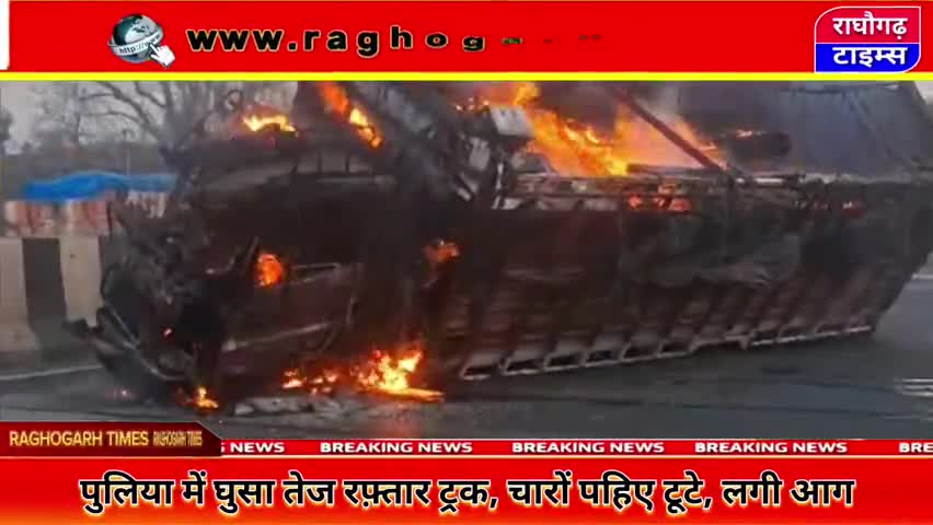 राघौगढ़ : पुलिया में जा घुसा ट्रक, लगी आग, चार घंटे की कड़ी मसक्कत के बाद बुझा पाई फायर ब्रिगेड