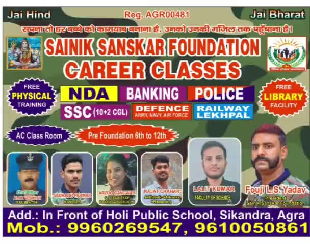 सैनिक संस्कार फाउंडेशन में दिया जा रहा युवाओं को निशुल्क प्रशिक्षण साथ ही कराई जा रही लिखित परीक्षा की तैयारी