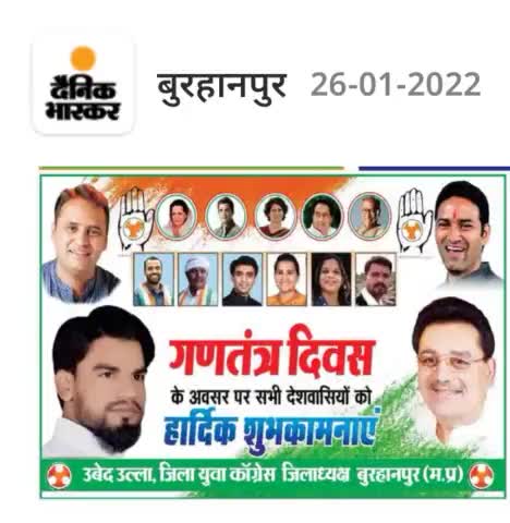युवा कांग्रेस बुरहानपुर जिला अध्यक्ष उबैद उल्लाह ने गणतंत्र दिवस की जिला वासियों को बधाई दी