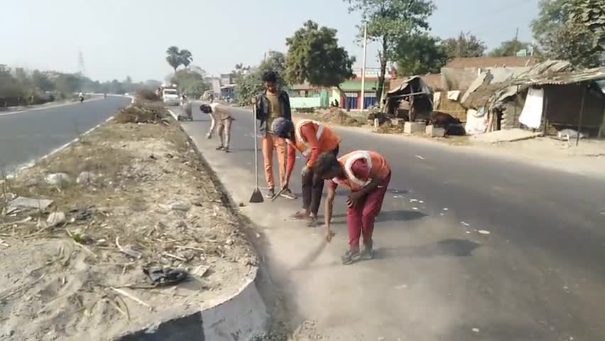करनैलगंज: ग्राम पंचायत नारायणपुर मांझा में लोक निर्माण विभाग के सफाई कर्मी कर रहे हैं डिवाइडर की साफ-सफाई, होगा पौधरोपण