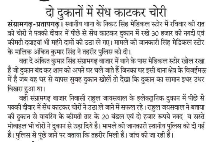 चोरों ने दुकानों में सेंध काटकर हजारों का सामान लाया। #संग्रामगढ़