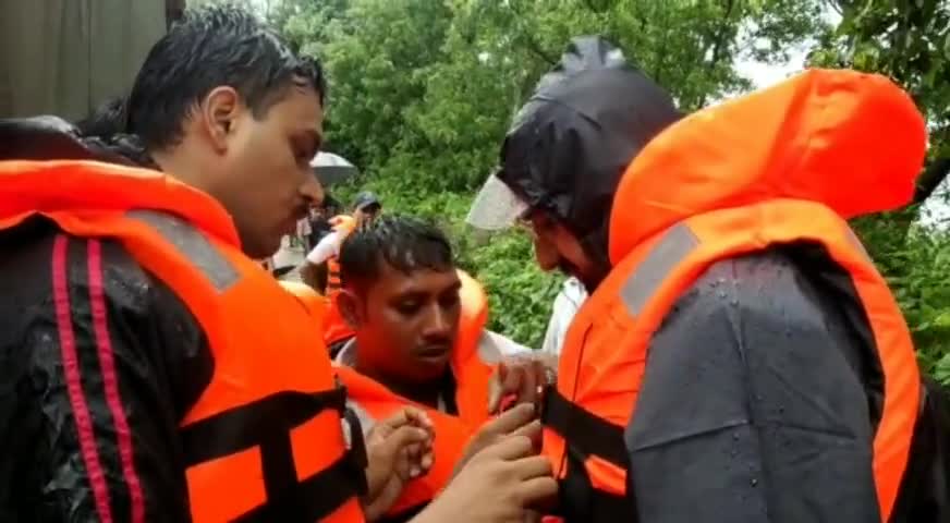 अशोकनगर विधानसभा के तुमेंन के पास ग्राम डंडोतियापुरा में पानी में फंसे लोगों का रेस्क्यू करने SDRF टीम के साथ पहुँचा।