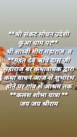 सोजत: **श्री संकट मोचन उदेशी कुआ धाम पर** श्री साध्वी मीरा महाराज व **महंत देव ऋषि दास जी महाराज बर कथावाचक द्वारा कथा वाचन