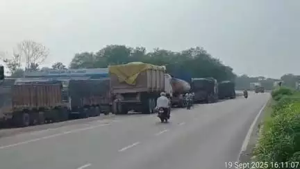 NH 53 रोड पर अवैध parking.. सड़क की दिनों ओर ढाबों के चलते ट्रर्कों की अवैध parking से रोजाना छोटी बड़ी दुर्घटना देखें..
