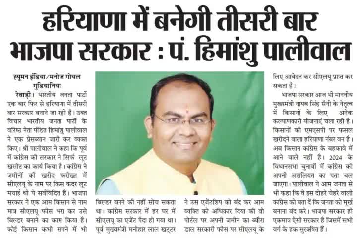 हरियाणा में तीसरी बार बनेगी भाजपा की सरकार