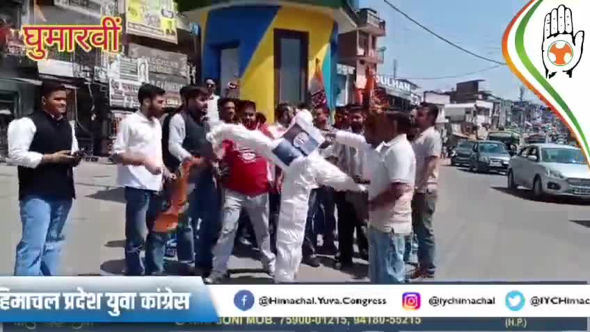 आज महंगाई के खिलाफ घुमारवीं में ज़िला युवा कांग्रेस के साथियों ने नरेंद्र मोदी सरकार के खिलाफ पुतला दहन किया।