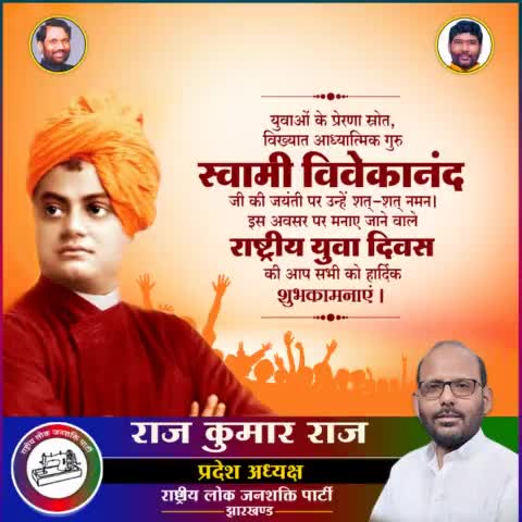 युवाओं के प्रेरणा स्त्रोत, महान आध्यात्मिक गुरु स्वामी विवेकानंद जी की जयंती पर उन्हें श्रद्धापूर्वक नमन एवं देश के सभी युवा साथियों को 'राष्ट्रीय युवा दिवस' के अवसर पर हार्दिक बधाई एवं शुभकामनाएं।
