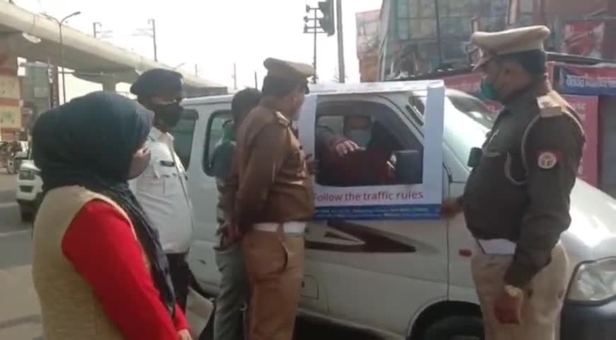 मुंशीपुलिया चौराहे पर पुलिस ने एनजीओ की मदद से लोगों को ट्रैफिक नियमों के प्रति किया जागरूक